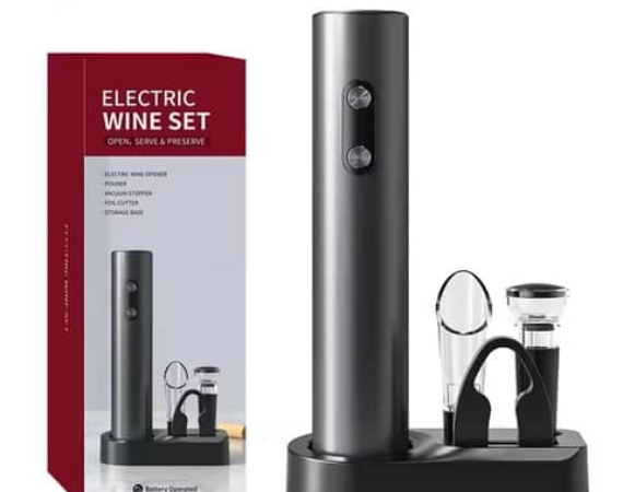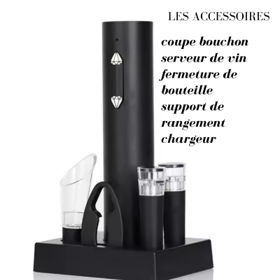 🍷 Pourquoi choisir ce Tire-Bouchon Électrique Premium ?✅ Gain de temps et d'effort : ouvrez vos bouteilles en quelques secondes, sans forcer.✅ Complet et prêt à l’emploi : livré avec coupe-bouchon, serveur de vin, bouchons de conservation, chargeur et support.✅ Grande autonomie : une seule charge suffit pour déboucher plus de 50 bouteilles.✅ Élégance et praticité : un design moderne qui s’intègre parfaitement dans votre cuisine ou votre bar.✅ Idée cadeau parfaite : un accessoire raffiné pour amateurs de vin, à offrir ou à s’offrir.💥 C’est plus qu’un simple tire-bouchon, c’est une expérience !